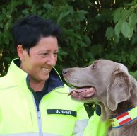 Die letzte im Bunde ist Johanna Gall. Johanna ist ehrenamtlich beim Roten Kreuz in Niederösterreich tätig und dort für die Ausbildung der Teams zuständig. Mit ihrem Weimaraner-Rüden "Raureif" war sie insgesamt 10 Jahre im Einsatz. Jetzt mit 13 Jahren genießt Rauhreif seine Pension und Rauhreif-Hündin "Coco" tritt demnächst in seine Fußstapfen.